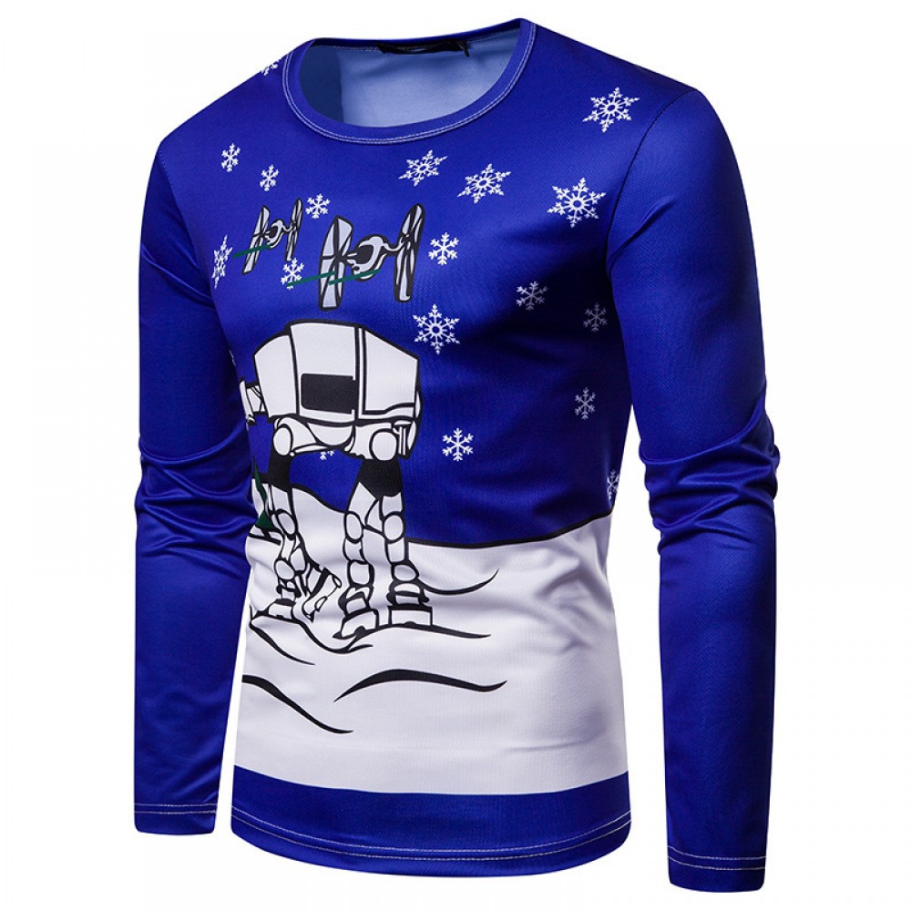 3D Personality Printing Fashion Men's Christmas Robot Pattern Long-Sleeved T-Shirt