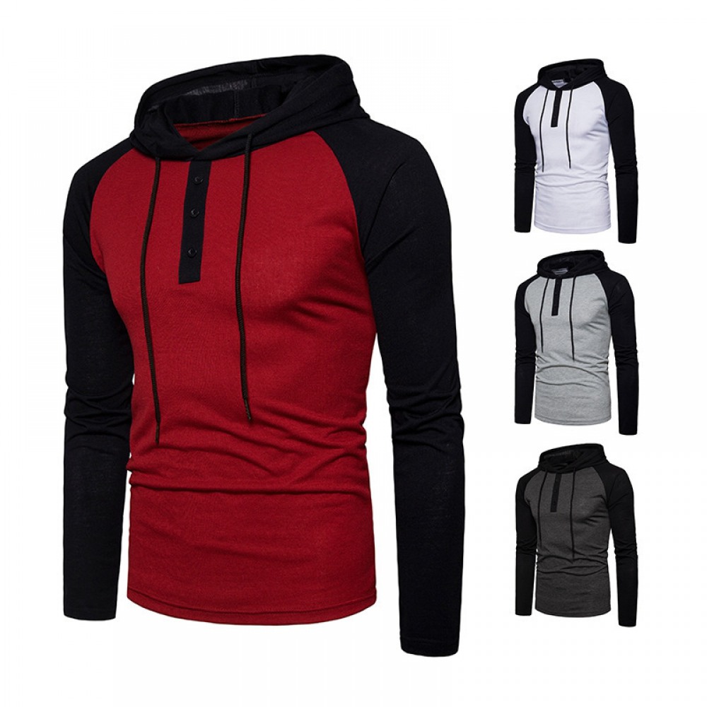 Men's Hip-Hop Access Control Color Matching Long-Sleeved Sports Hoodie Pullover