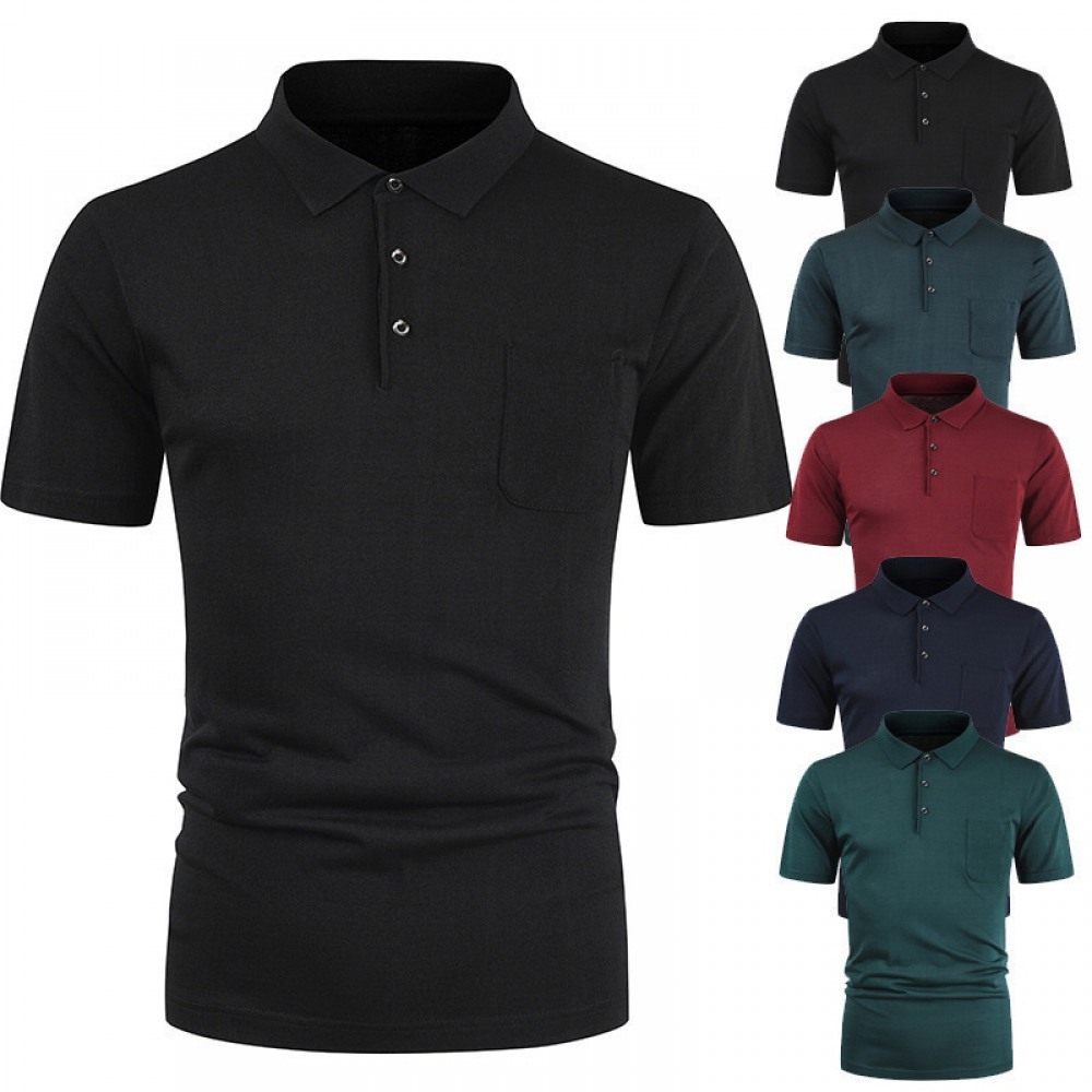 Men's Short-Sleeved T-Shirt Polo Shirt Business Version Solid Color