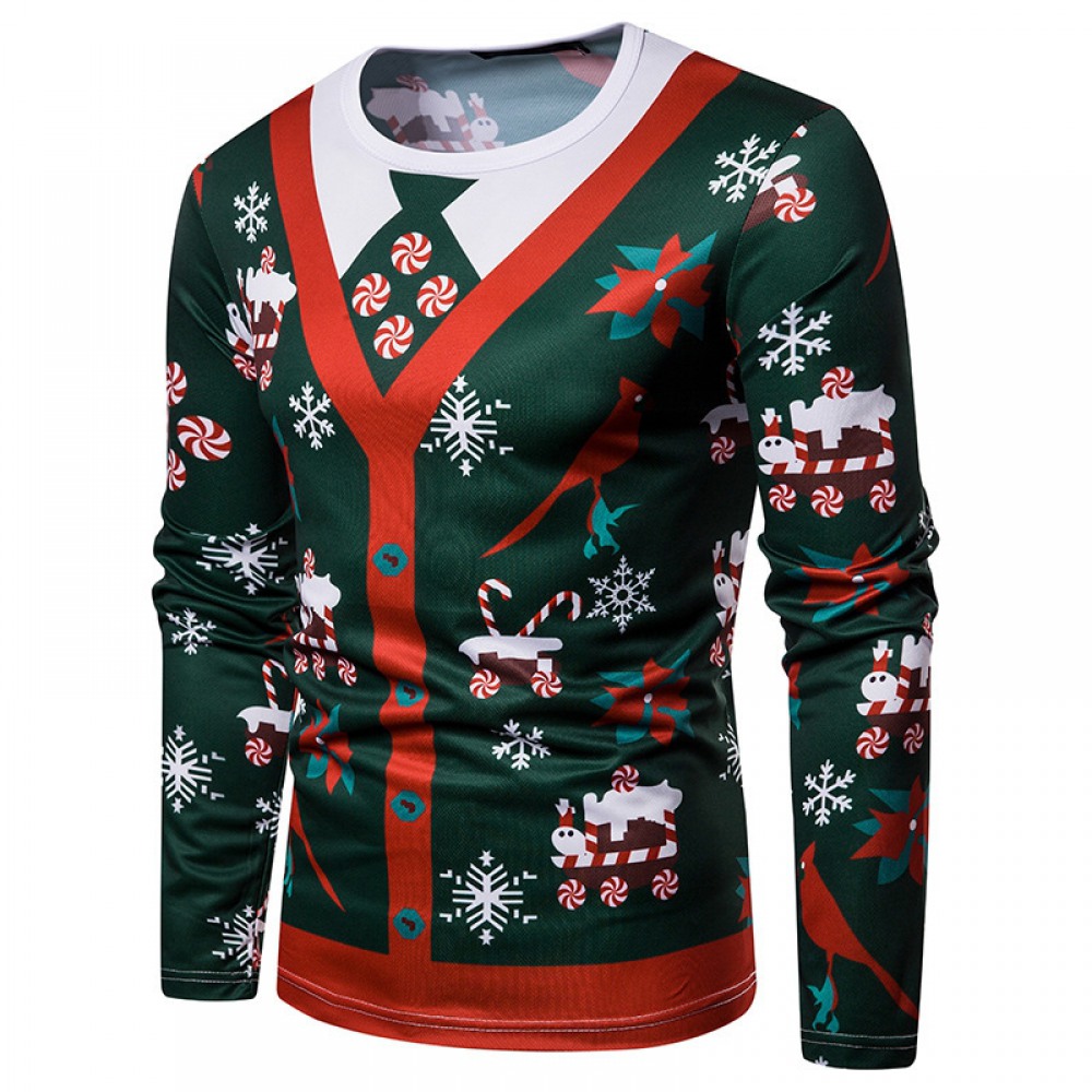 New 3D Personality Printing Fashion Men's Christmas Long-Sleeved T-Shirt