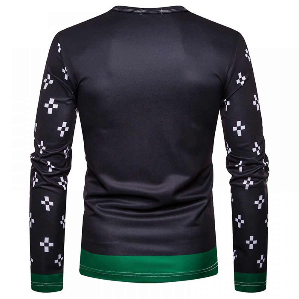 Fashion Male Creative Ethnic Style Floral 3D Printing Long-Sleeved T-Shirt