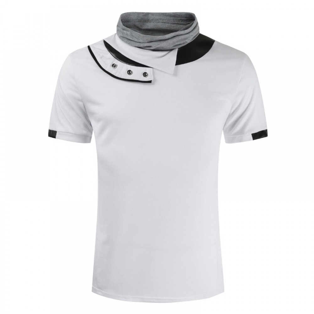 New Style Men's Personality Sports T-Shirt Fashion Leather High Pile Collar Short-Sleeved T-Shirts
