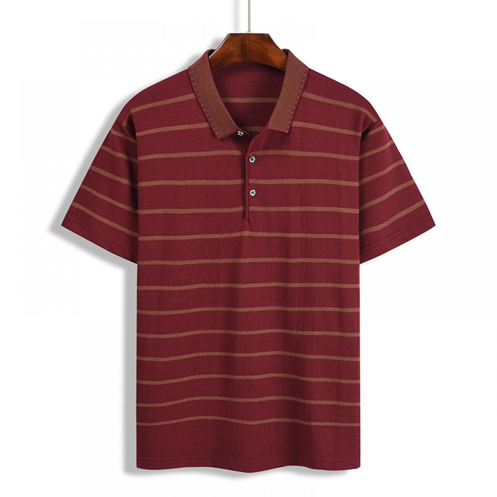 New Summer Men's Pullover Loose Striped Lapel T-Shirt Short Sleeve