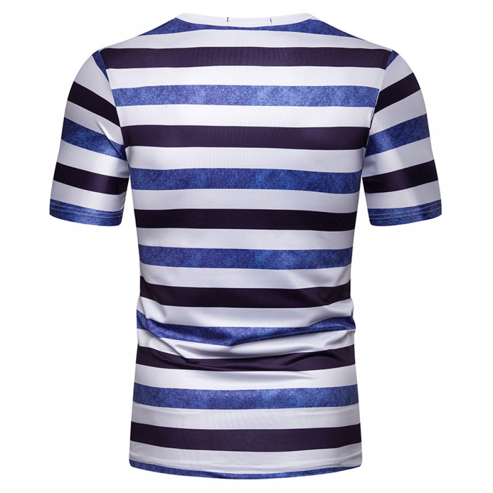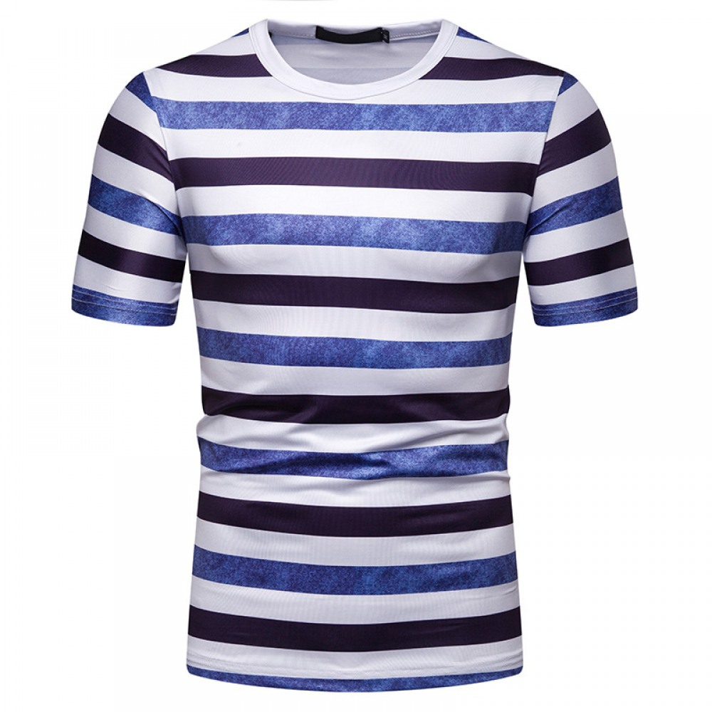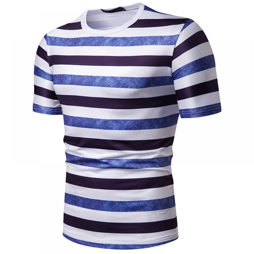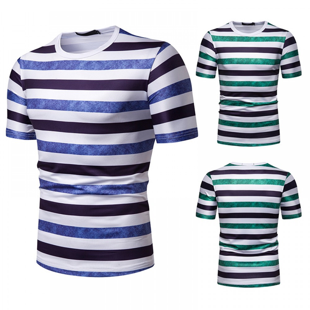 New Summer Men's Short-Sleeved T-Shirt Contrast Striped Slim Casual T-Shirt