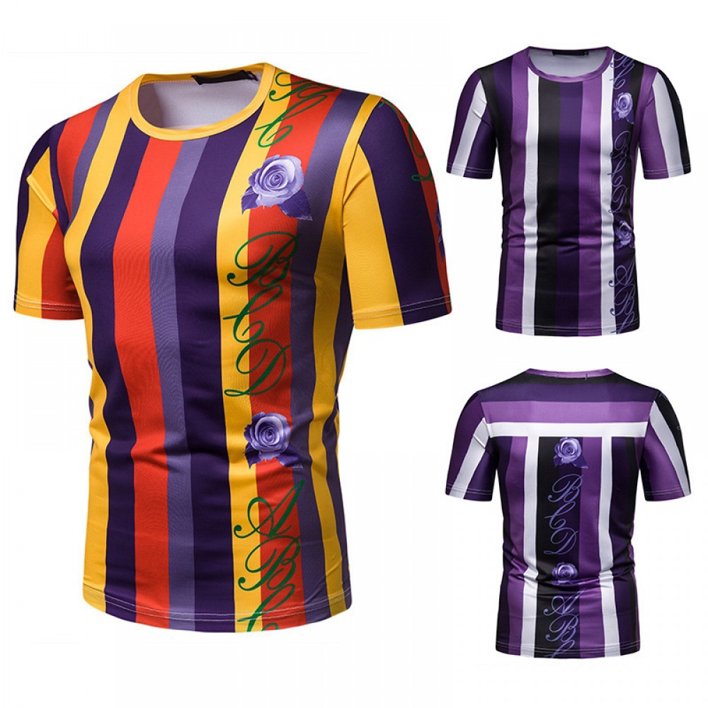 New Summer Men's Short-Sleeved T-Shirt Contrast Striped Slim Casual T-Shirts