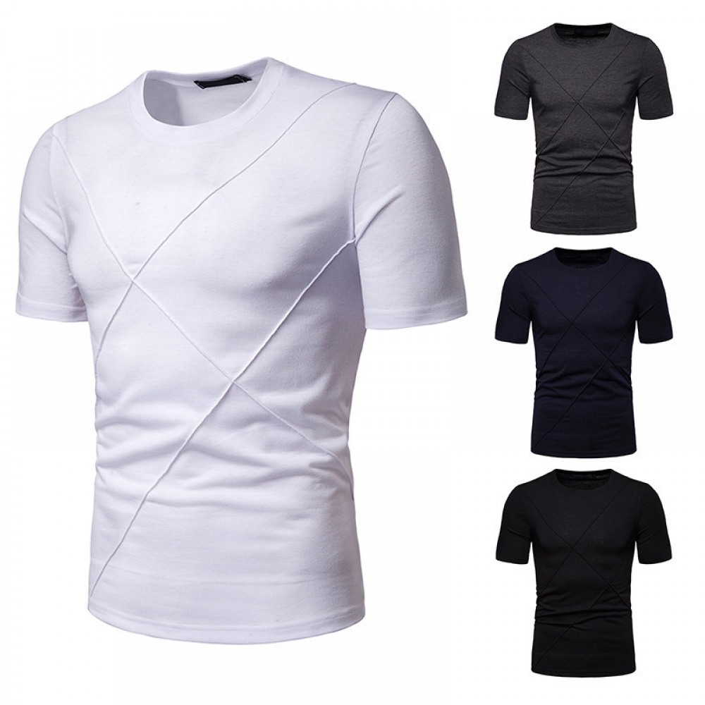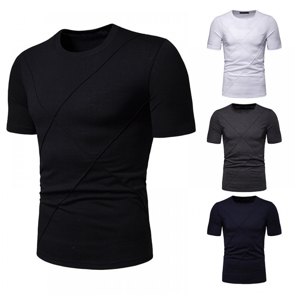 New Summer Thin High Stretch Men's Pleated Round Neck Short Sleeve T-Shirt