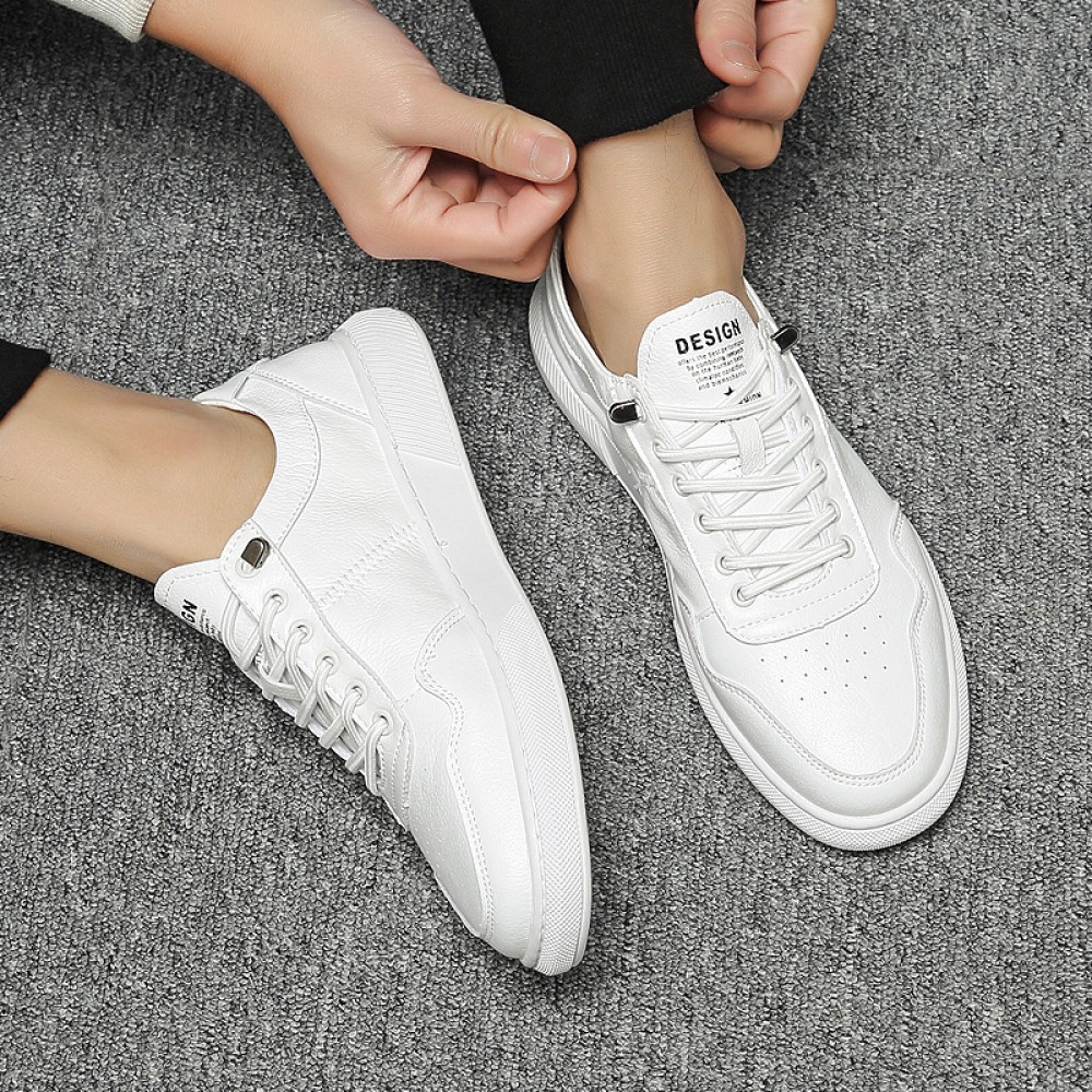 New Men's Trendy Summer Breathable White Board Shoe Leather Casual Shoes
