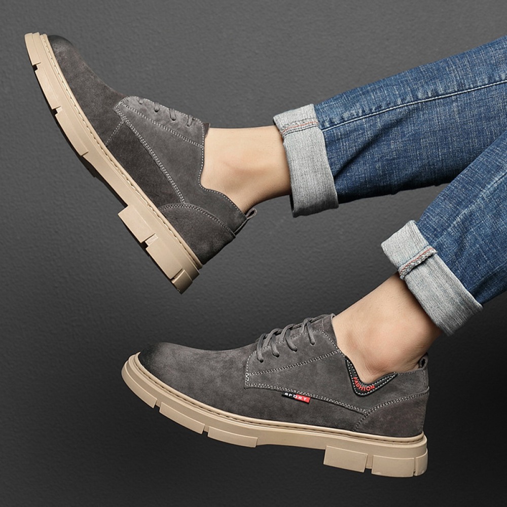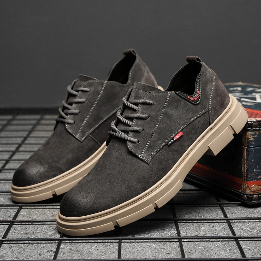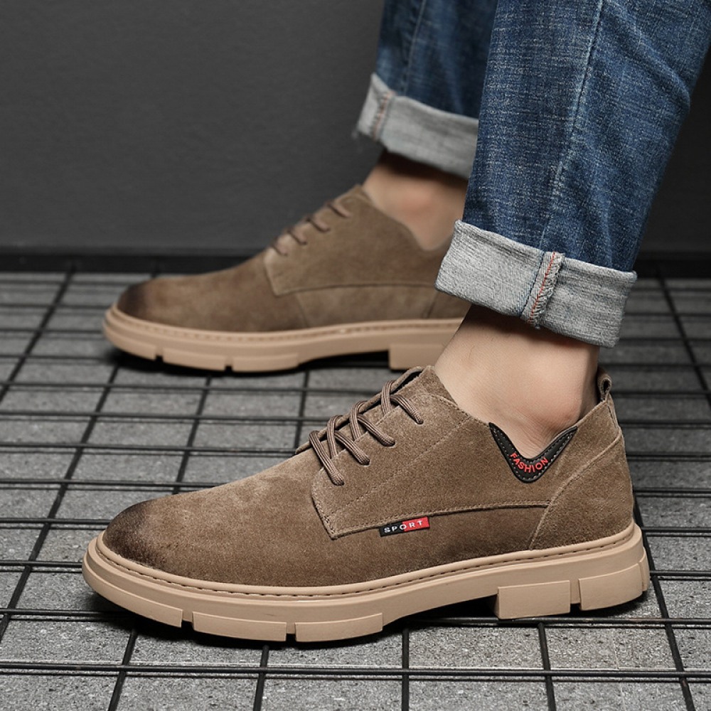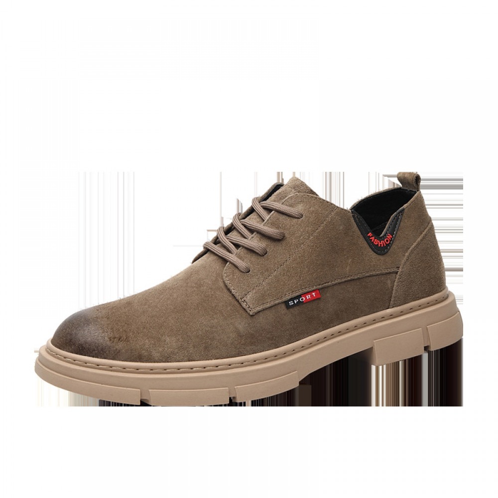 New Men's Casual Leather Shoe Round Toe Lace-Up Breathable Trend Shoes