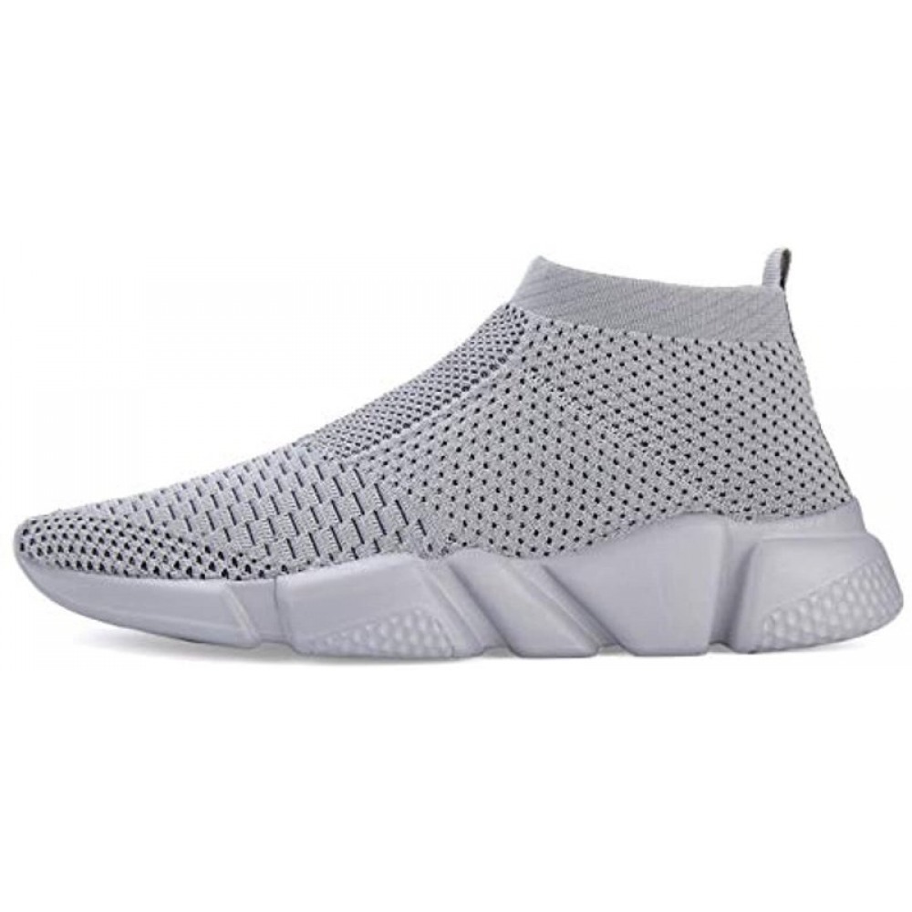 Men's Running Shoes Breathable Knit Slip On Sneakers Lightweight Athletic Casual Sports Shoes All Grey
