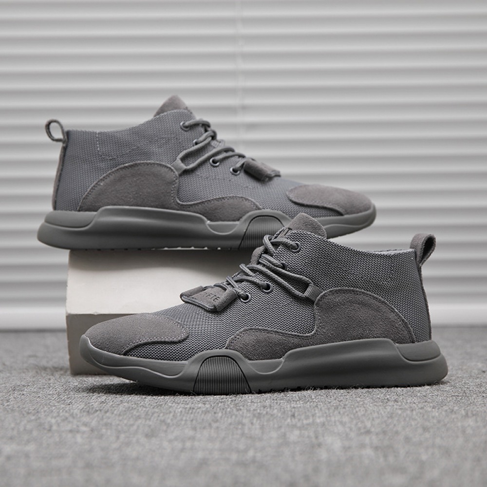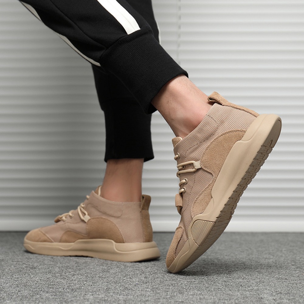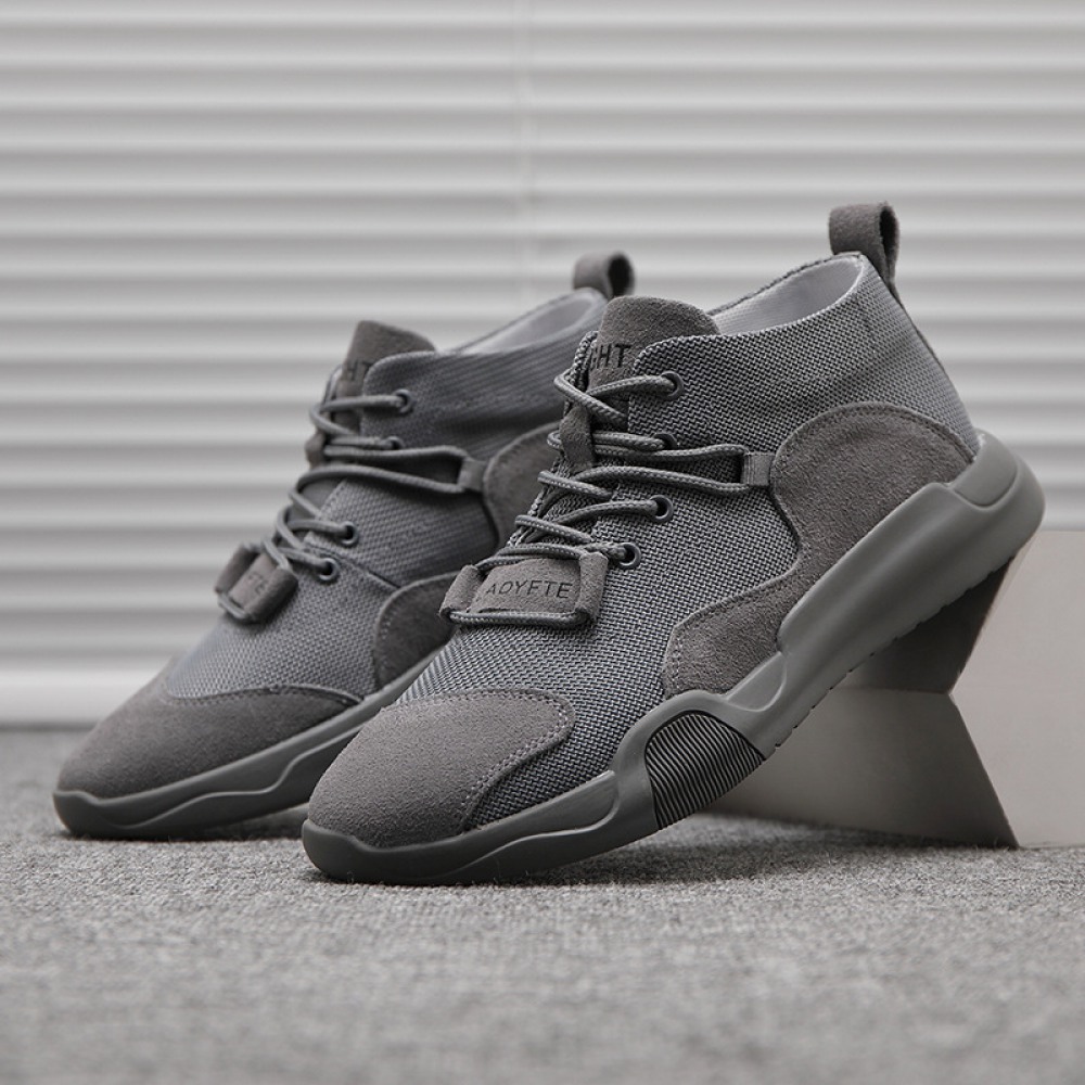 Men's Trendy Casual Leather Breathable Mesh Shoes Explosion Models Stitching Sports Shoes