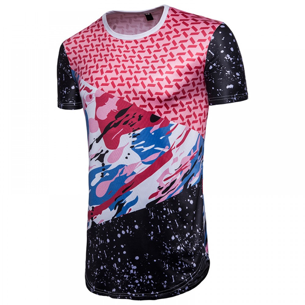 New Men's Digital Print Floral Color Matching Short-Sleeved Hip-Hop T-Shirt
