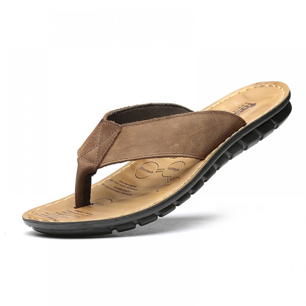 New Men's Flip-Flops Summer Beach Shoes Non-Slip Sandals Trend Leather Massage Sandals
