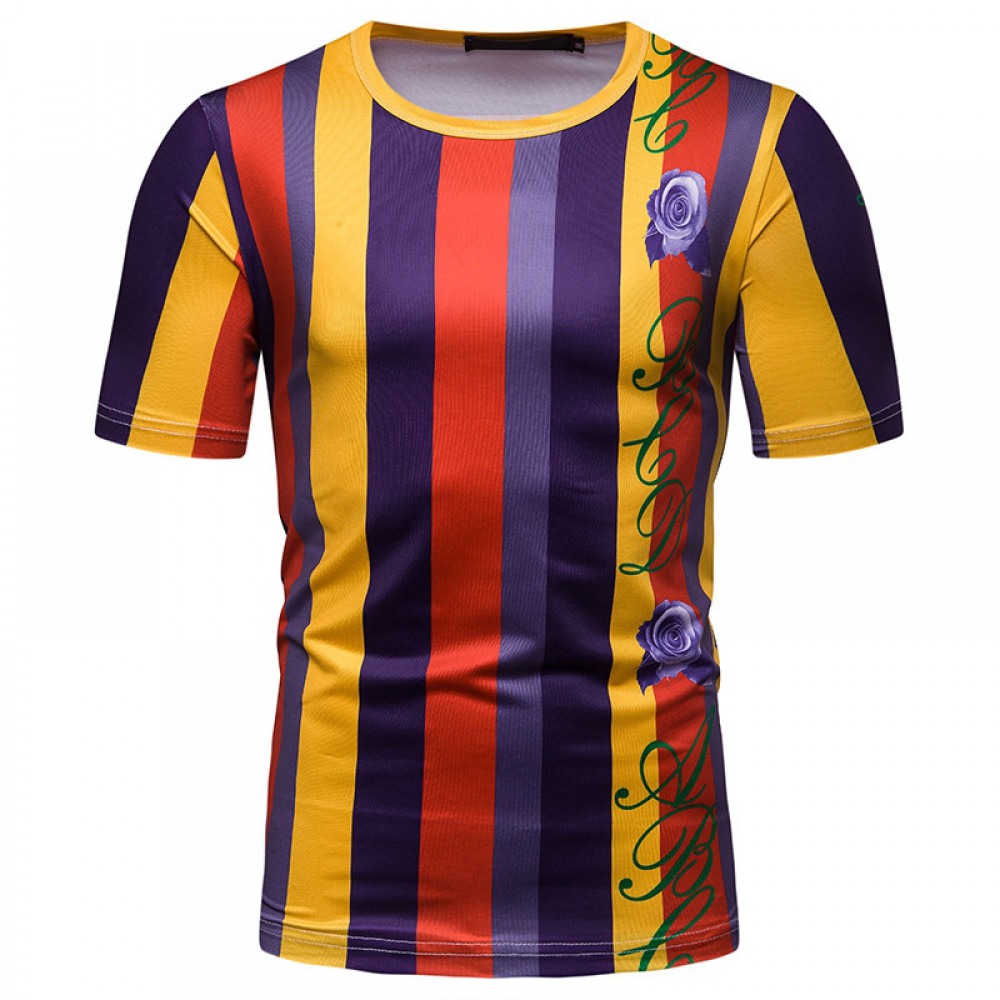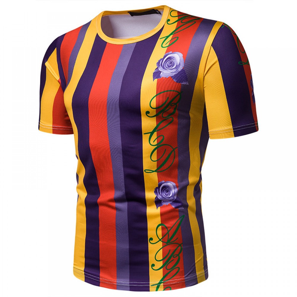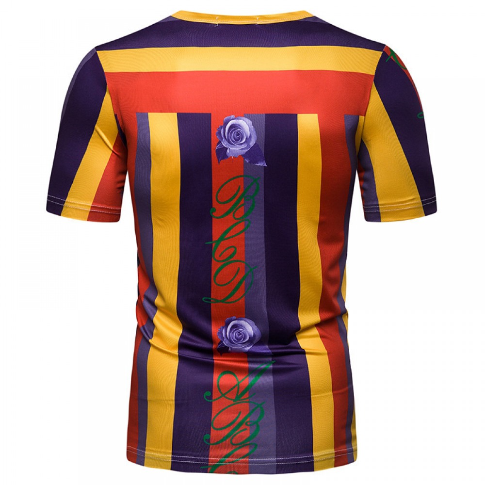 New Summer Men's Short-Sleeved T-Shirt Contrast Striped Slim Casual T-Shirt