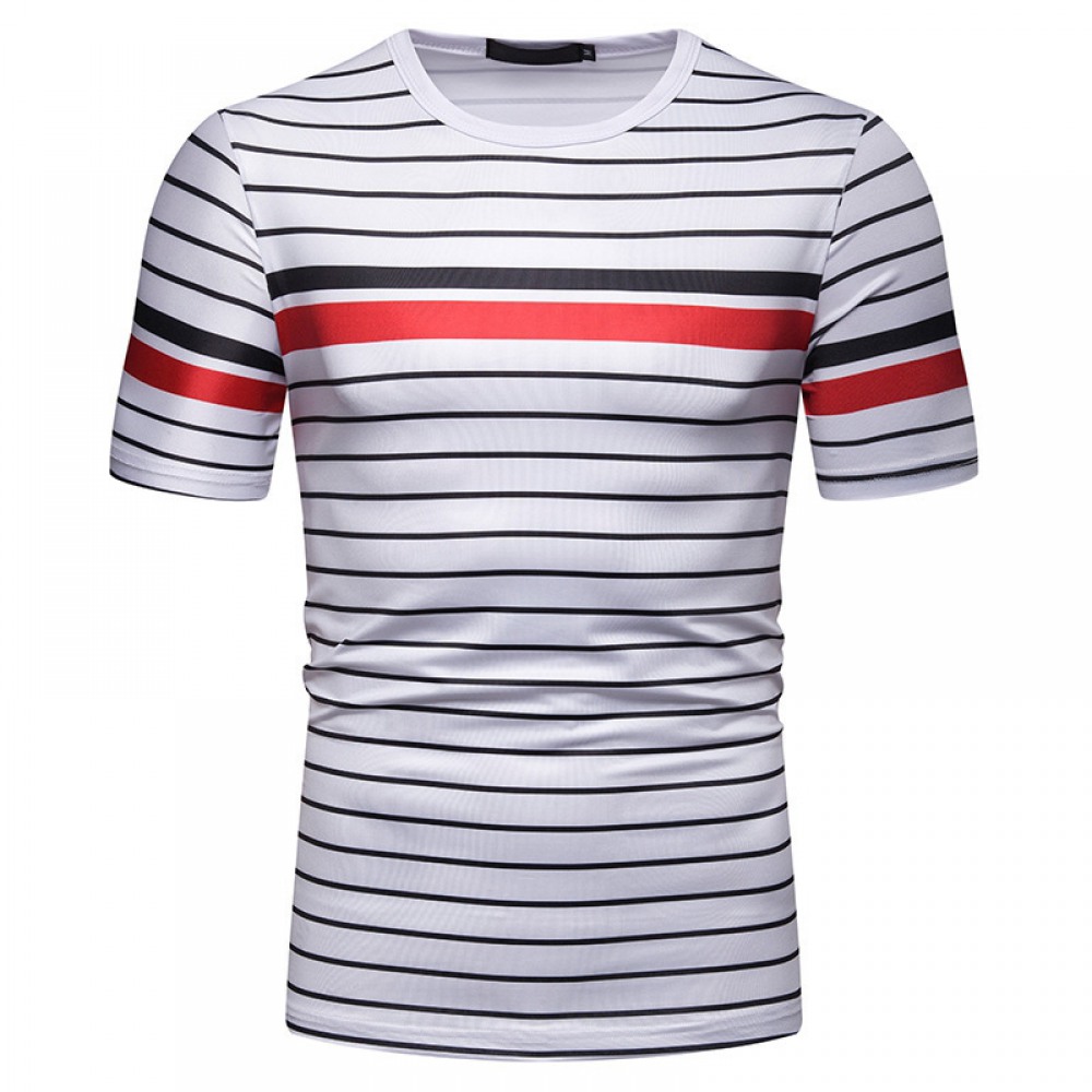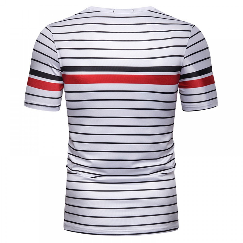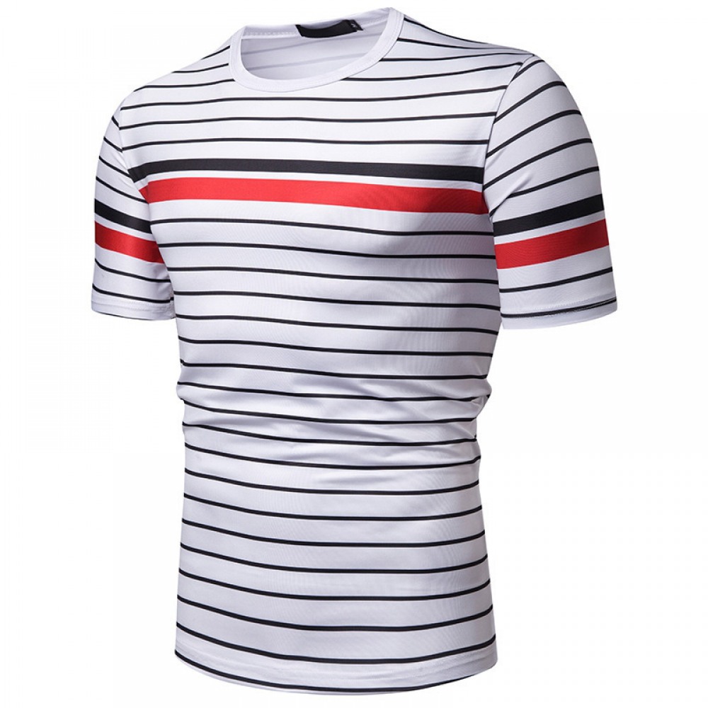 New Summer Men's Short-Sleeved T-Shirt Contrast Striped Slim Casual T-Shirt