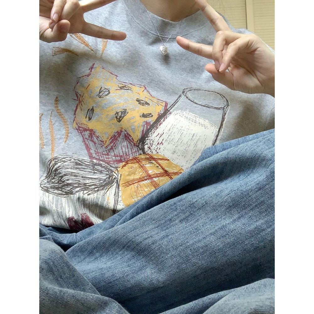 Women's Cotton Short-Sleeved T-Shirt With Retro Print Round Neck And Half Sleeves